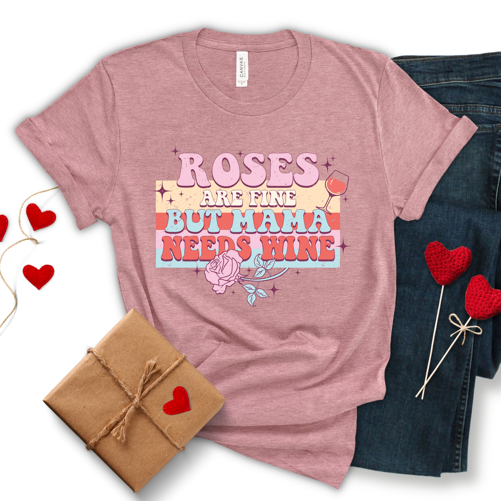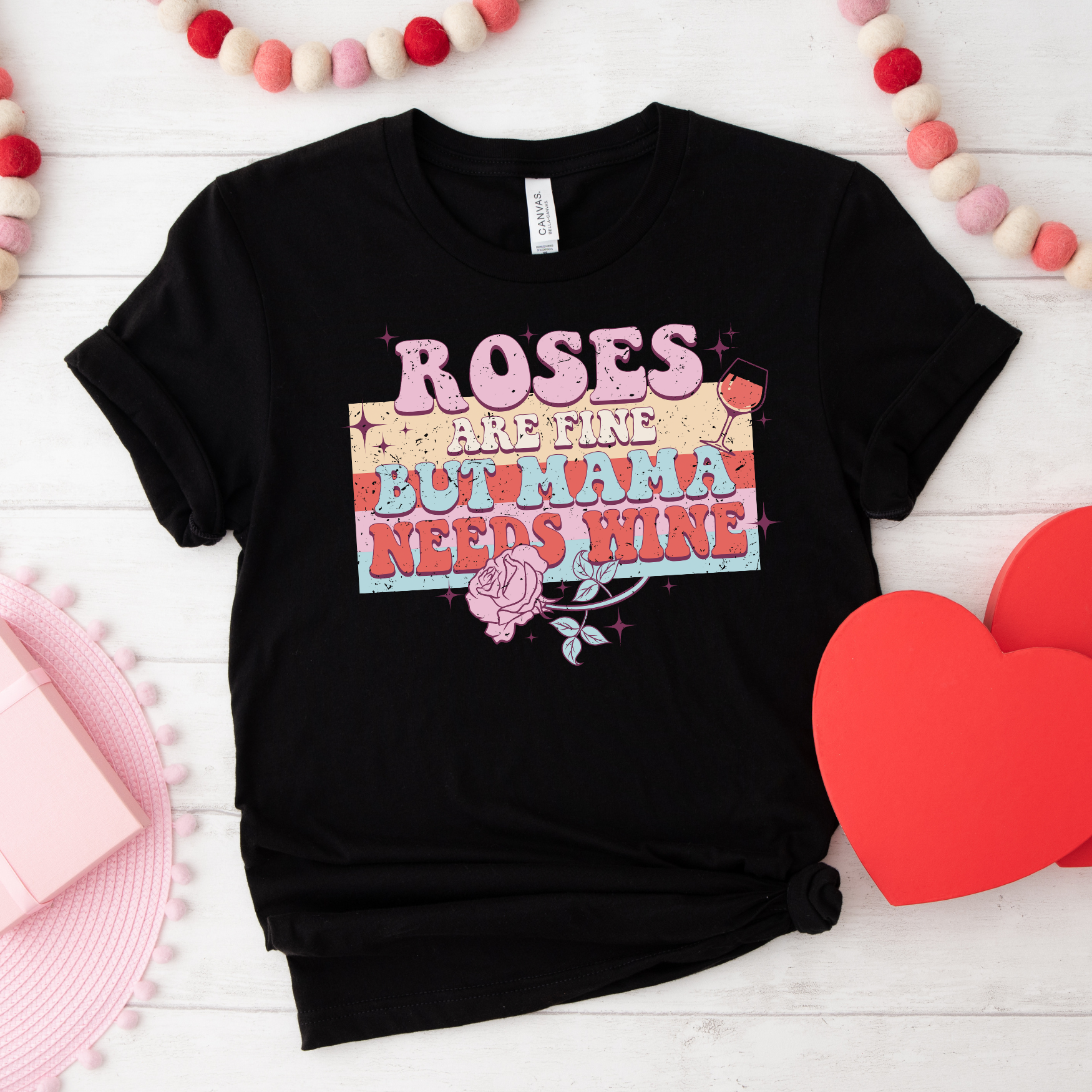 Whether you're a mom yourself or you're shopping for a special mother in your life this Valentines Day, a "Roses are fine but Mama needs Wine" t-shirt is a fun and unique way to show your appreciation. So go ahead, pour yourself a glass of your favorite wine and enjoy a quite evening in your new cozy t-shirt.
